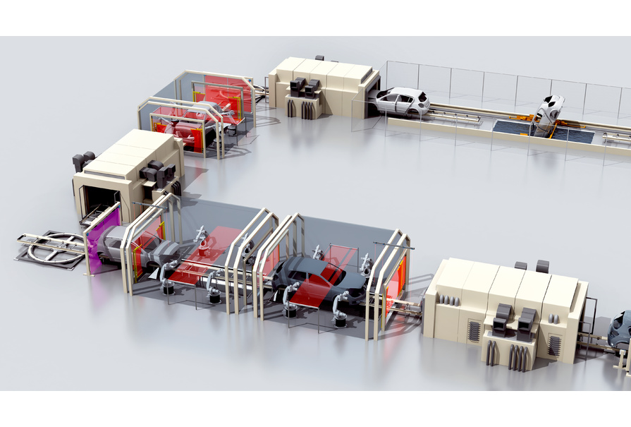 當(dāng)車(chē)身進(jìn)入噴涂生產(chǎn)線時(shí),工作人員須再次檢查車(chē)身類(lèi)型。同時(shí)還應(yīng)檢查所有閉合部分(引擎蓋、后備箱)以及車(chē)門(mén)的位置是否正確。2D LiDAR 傳感器 LMS500 會(huì)對(duì)當(dāng)前的測(cè)量數(shù)據(jù)與預(yù)設(shè)的輪廓和外形尺寸進(jìn)行對(duì)比。通過(guò)對(duì)車(chē)身輪廓的掃描,避免機(jī)器人與車(chē)輛發(fā)生碰撞,保障噴涂安全均勻。