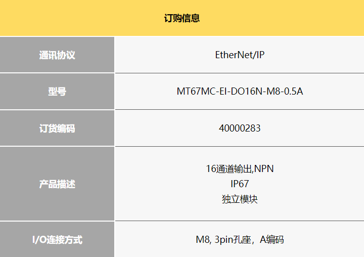 型號:MT67MC-EI-DO16N-M8-0.5A