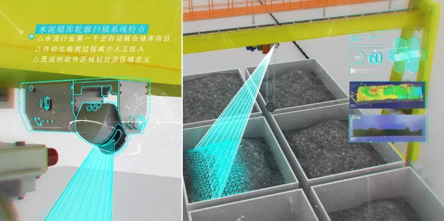 利用3D掃描平臺安裝在天車頂部,用于自動化測量散料坑中的散料高度、以便于散料入庫和天車自動抓取。平臺將料坑內散料高度測量結果發(fā)送到上位控制系統(tǒng),用于料坑的全自動化高點整理、入庫位置選擇和抓取出庫、并可向用戶時時查看庫存情況。