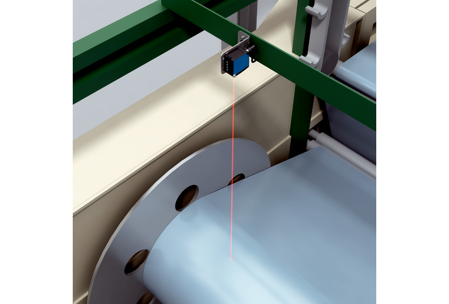 將膜幅繞制成卷材時,距離傳感器 Dx35 測量卷筒上的物料高度。由此可以識別卷筒是否已滿,是否必須更換為空卷筒。