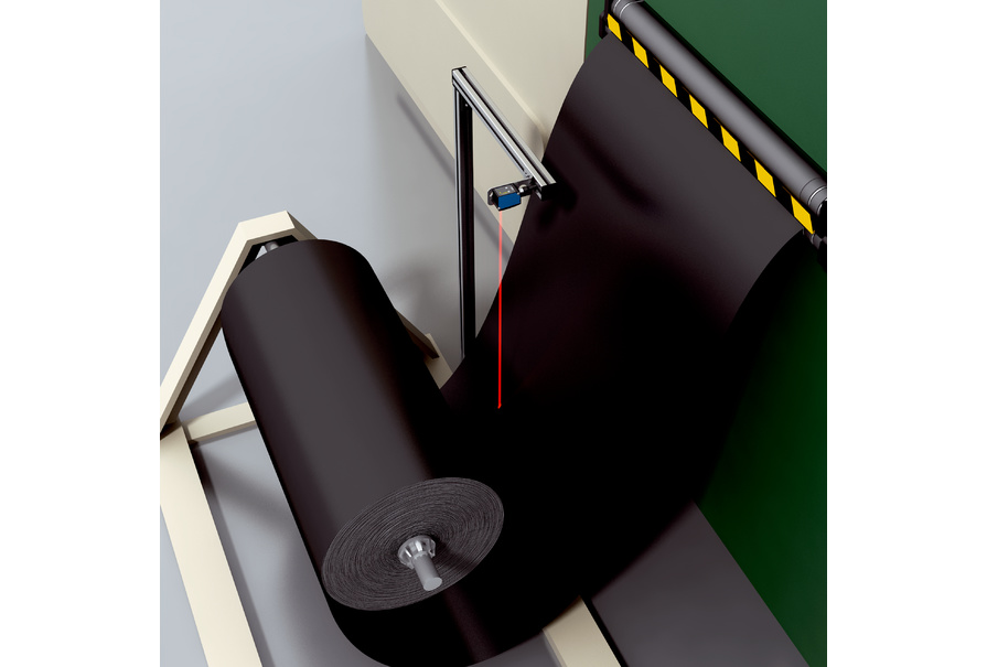 距離傳感器 Dx35 控制塑料薄膜到熱成型機(jī)內(nèi)的輸送。它置于卷的上方,持續(xù)測量薄膜的垂度,或者標(biāo)出兩個預(yù)設(shè)的距離點。