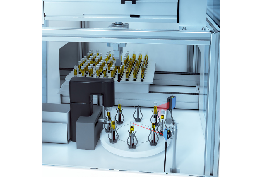 開(kāi)瓶器和樣品轉(zhuǎn)盤(pán)中的瓶蓋識(shí)別和測(cè)試試管識(shí)別-德國(guó)西克SICK傳感器