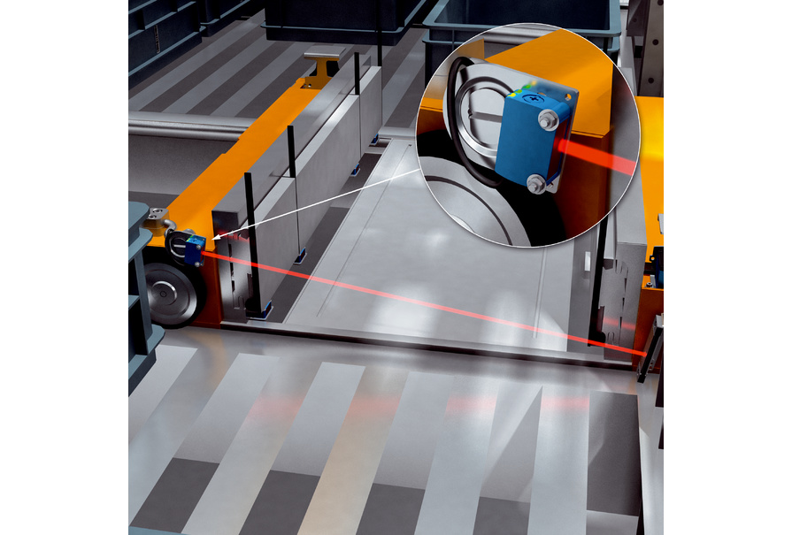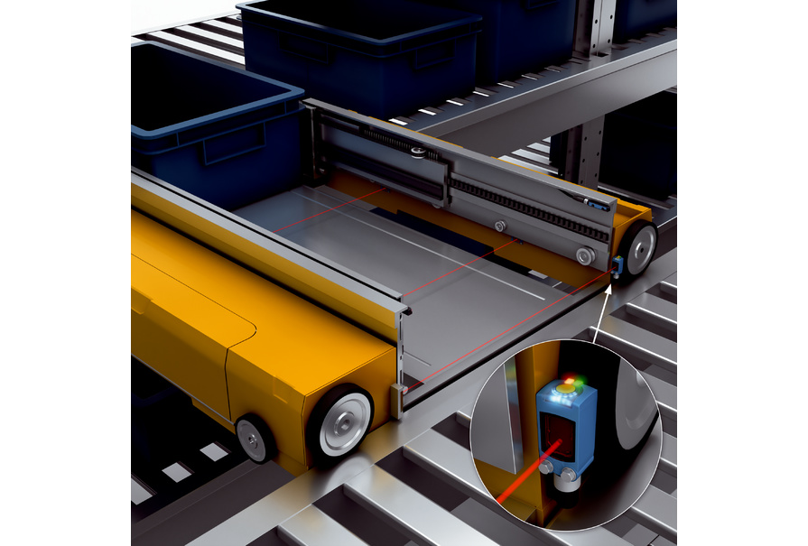 為保障移動自由和避免碰撞,需要監(jiān)控承載單元的凸起部分。由此防止穿梭車、載貨架和貨架受損。得益于緊湊的結(jié)構(gòu)型式與均勻的光斑幾何形狀,反射式光電傳感器成為最佳解決方案。