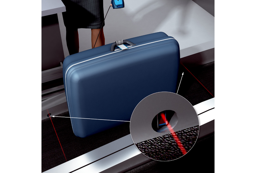 安裝在行李檢錄傳送帶側(cè)面向?qū)系膬蓚€微型光電傳感器 G6 監(jiān)控超長行李件。其特點在于:安裝簡便、高度耐用,帶有內(nèi)螺紋的金屬配件和光點可視度極高的 PinPoint LED。