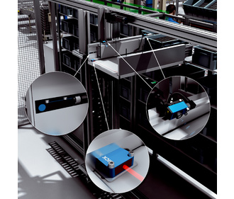 在承載單元接收一個容器之前,反射式光電傳感器 G6 檢查其是否空閑。根據(jù)容器長度,需檢查多個位置。感應(yīng)式接近傳感器 IQ08 控制伸縮臂在行駛方向上的定位。針對不同尺寸的容器,由模擬輸出的超聲波傳感器 UC4 協(xié)助調(diào)整伸縮臂的側(cè)向定位。憑借極其穩(wěn)定且耐用傳感器的超緊湊型結(jié)構(gòu),其機器設(shè)計即使在空間有限的應(yīng)用情況下也不會受到限制。
