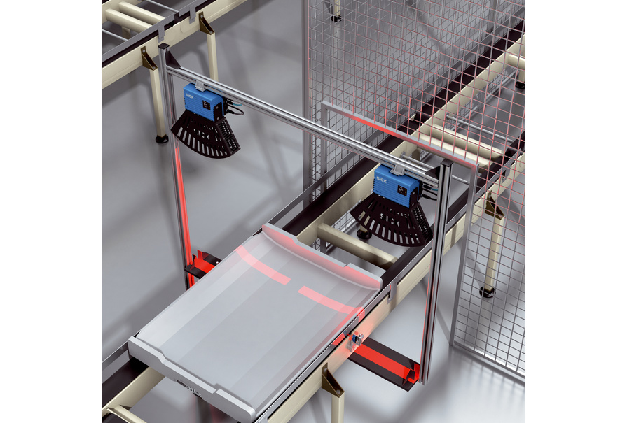 在機(jī)器人將行李托盤運(yùn)輸?shù)綑z查站之前,LiDAR 傳感器 LMS4000 對筐進(jìn)行監(jiān)控。所述掃描儀檢查筐是否已空、是否堆疊或是否具有進(jìn)一步輸送所必需的筐元件。