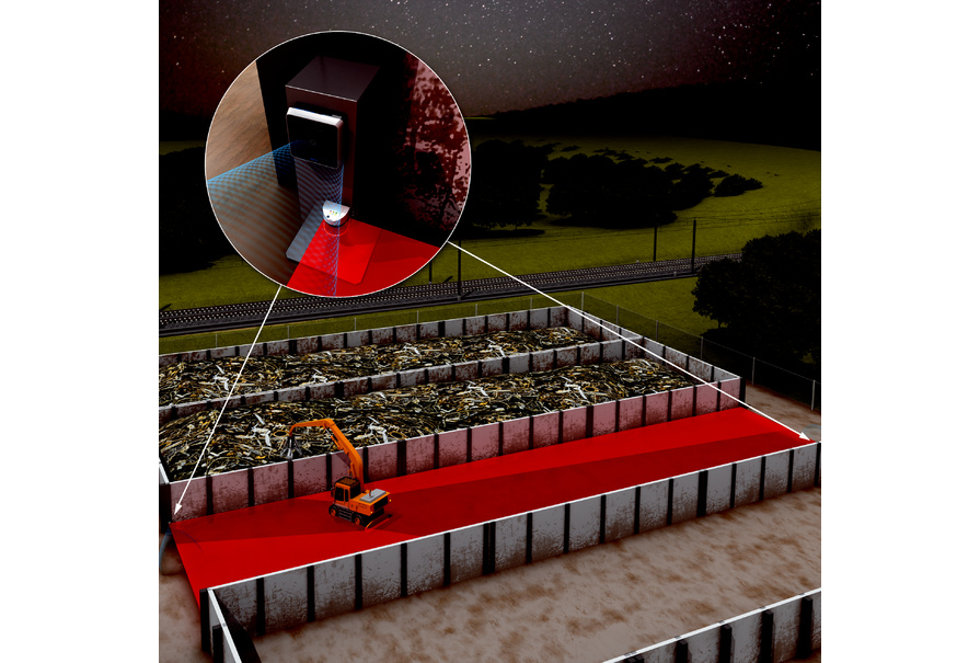 為保護(hù)廢料場上昂貴、可再利用的原材料以防被盜,例如一個安裝在立柱上的二維掃描儀用于監(jiān)控待保護(hù)區(qū)域并在監(jiān)控區(qū)域被破壞時觸發(fā)警報。由于該傳感器易于運(yùn)輸和安裝,在需要時可以交替保護(hù)不同的監(jiān)控區(qū)域。如果它與無線射頻識別讀取設(shè)備組合使用時,對于證件中包含相應(yīng)應(yīng)答器的授權(quán)人員在進(jìn)入各自的倉儲區(qū)時不會觸發(fā)警報。