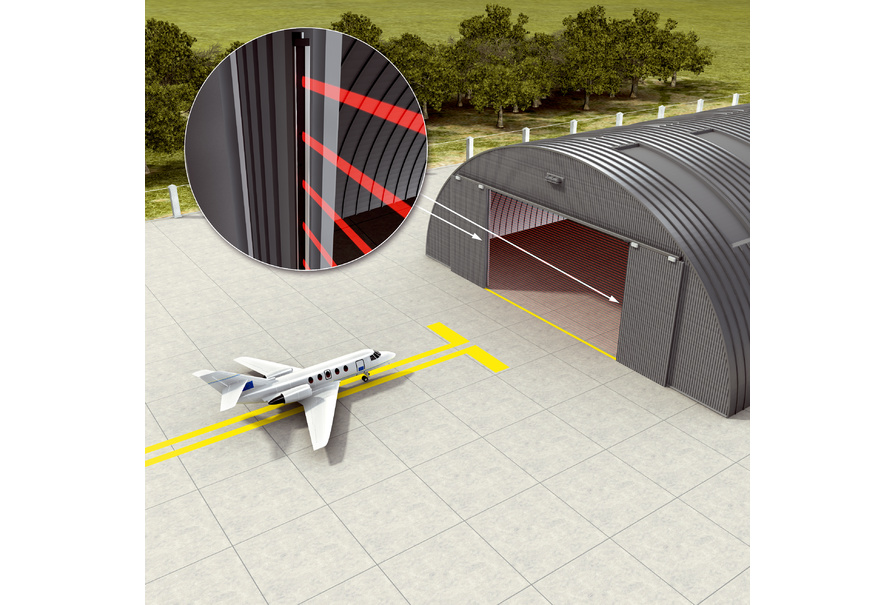 在機場、物流中心和其他建筑的大門上,自動化光柵 ELG 或 SLG 能夠可靠地監(jiān)控人員進入的情況。對于小型門使用光電傳感器 G10,對于大面積使用帶晴雨防護外殼 2D LiDAR 傳感器 LMS5xx。