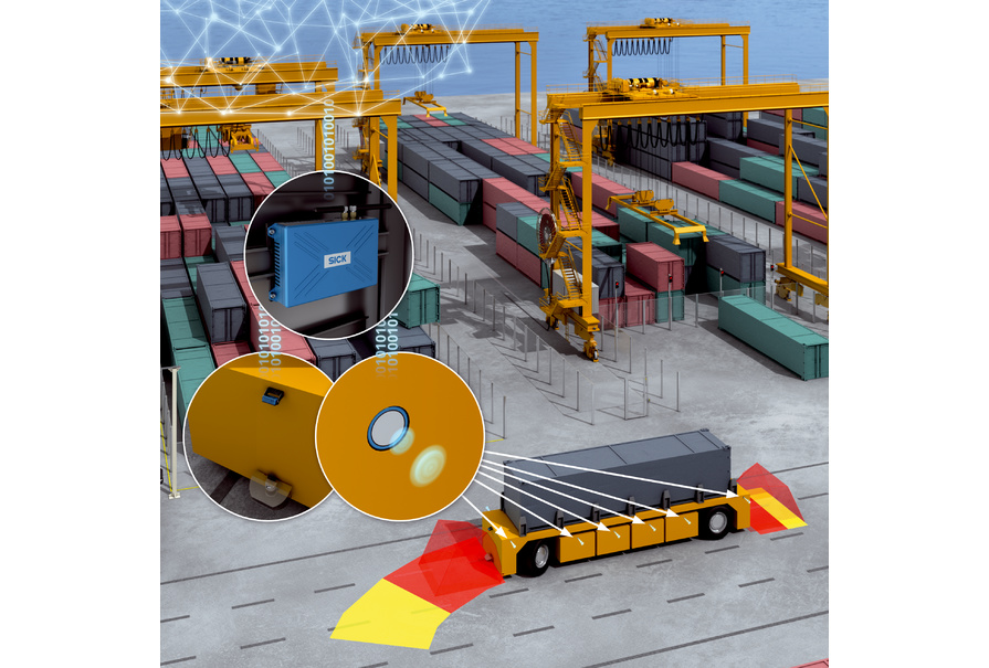 LiDAR 傳感器和用于前后部區(qū)域的 3D 快照視覺傳感器(TOF 視覺傳感器)以及用于自動(dòng)導(dǎo)航車側(cè)面保護(hù)的超聲波傳感器的組合提供了有效的 360° 全方位保護(hù)。在此,移動(dòng)式網(wǎng)關(guān)傳輸自動(dòng)導(dǎo)航車的過程數(shù)據(jù)和定位數(shù)據(jù),并將其轉(zhuǎn)發(fā)至港口碼頭的中央數(shù)據(jù)管理系統(tǒng)。通過對所有自動(dòng)導(dǎo)航車的數(shù)據(jù)進(jìn)行評估,可以全面了解每輛自動(dòng)導(dǎo)航車在港口碼頭中的位置和狀態(tài)。