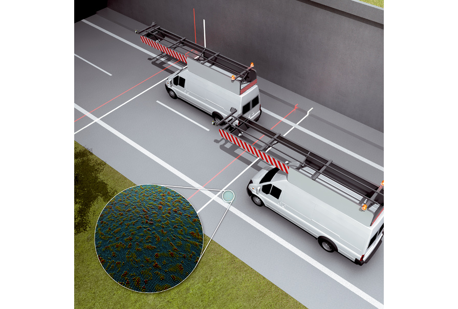 為評估車道狀態(tài),必須可靠地識別大的損壞情況,如凹坑、車轍或車道沉降。堅固的 2D LiDAR 傳感器 LMS511 安裝在檢查車輛上。即使在高車速下,它也能提供精確的測量數(shù)據(jù),借助這些數(shù)據(jù)能匯總成整個經(jīng)檢查道路的三維圖像。