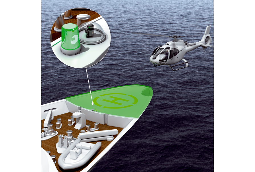 游艇的所有者和乘客通常都想盡快上船。因此,大型游艇配有直升機降落坪。為確保安全降落且降落坪可供使用,LiDAR 傳感器將監(jiān)控危險區(qū)并檢測危險區(qū)域內的可能物體。傳感器在玻璃穹頂下方典雅地融入船舶設計。