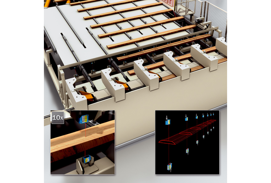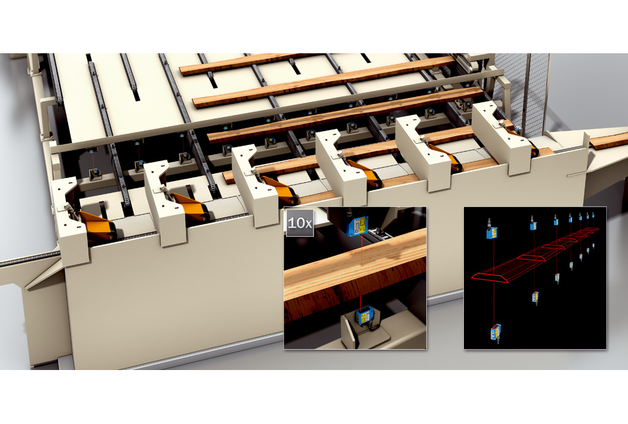 每兩個高精度對置位移測量傳感器 OD Value 計算出木板的準(zhǔn)確輪廓,并檢測鈍棱位置。視覺集成器在掃描期間使用數(shù)據(jù),并在輪廓之間插入?yún)^(qū)域用于優(yōu)化木板,以便隨后用鋸進(jìn)行刨邊。