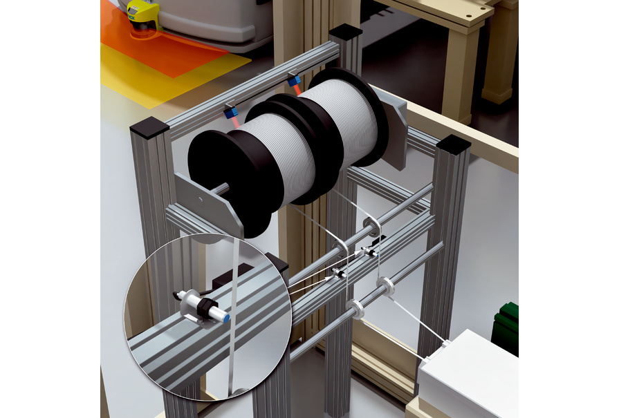漫反射式光電傳感器 W9-3 是針對這一點的理想經(jīng)濟的解決方案。它以九十度角安裝到輥軸上,識別暗色輥軸和發(fā)光焊接帶之間的對比度。接近傳感器 IME08 持續(xù)監(jiān)測焊接帶的開卷,在斷裂時發(fā)出通知。
