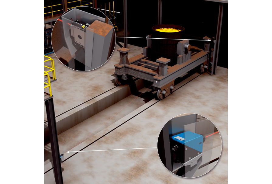 當無鋼水罐位于鋼水罐車中時或當鋼水罐車未正確定位時,不得出鋼。因此,中程距離傳感器用于檢測鋼水罐和鋼水罐車是否存在。憑借其可靠的金屬外殼,該傳感器在惡劣的電弧爐環(huán)境中被證明是非常耐用的,因而節(jié)省了成本。作為替代方案,也可以使用漫反射式光電傳感器。如果電弧爐旁的惡劣環(huán)境條件相同,該傳感器也能跟中程距離傳感器一樣可靠地檢測鋼水罐是否存在。