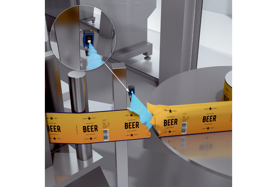 為確??煽窟M(jìn)給標(biāo)簽薄膜,需要不斷檢查薄膜。當(dāng)薄膜損壞時(shí),必須停止機(jī)器。超聲波傳感器 UM12 能夠可靠識(shí)別多種不同薄膜的受損情況,不受其光學(xué)特性影響。