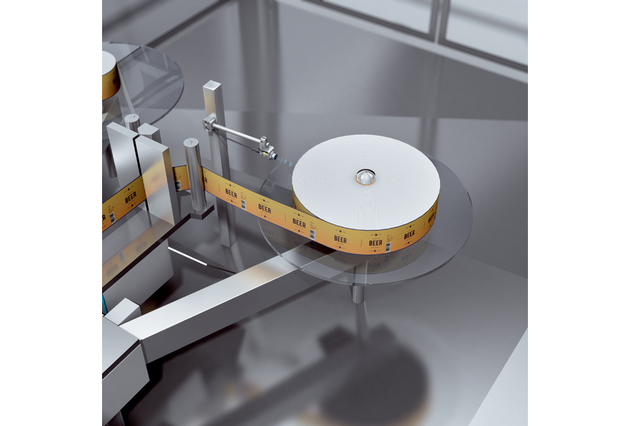 退繞敏感的薄膜材料需要恒定的幅面張力。為了正確控制拉取標(biāo)簽薄膜,需測定卷筒直徑。可靠的 UM18 系列超聲波傳感器,準(zhǔn)確檢測直徑,并在達(dá)到規(guī)定限值時進(jìn)行切換。操作人員由此獲得及時更換卷筒的附加信號。
