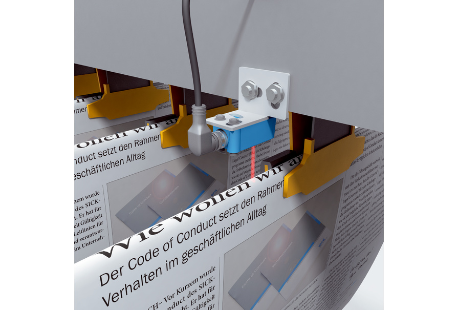 微型和小型漫反射式光電傳感器 WT4-3 和 WT9-3 檢測(cè)冊(cè)本的“凸肩”并檢查其是否就位。同時(shí)實(shí)現(xiàn)對(duì)冊(cè)本無(wú)接觸、無(wú)磨損的計(jì)數(shù)。