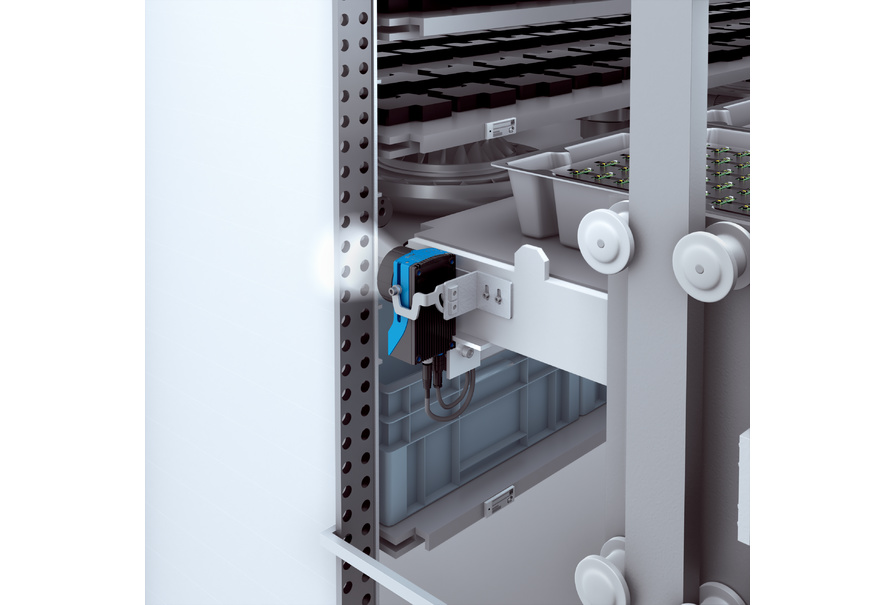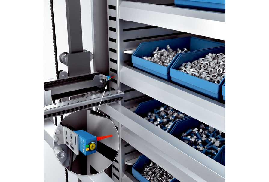 為了入倉(cāng)和出倉(cāng),必須補(bǔ)償例如可能因熱沖擊而產(chǎn)生的框架結(jié)構(gòu)機(jī)械偏差。對(duì)升降單元進(jìn)行絕對(duì)定位后,基于圖像的傳感器或者漫反射光電傳感器接下來(lái)將對(duì)其進(jìn)行有效定位。