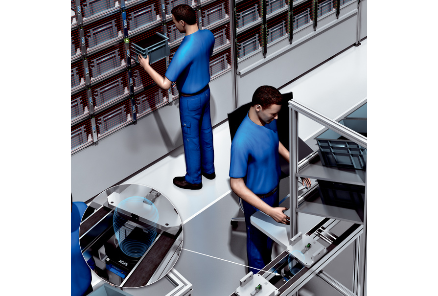 RFID 讀寫器 RFH620 在工件輸送架上讀取 RFID 應答器中編碼的產(chǎn)品信息。配合自動化光柵 PLG 對各安裝工序所需的構(gòu)件進行限定,并陳列給工人檢視。產(chǎn)品信息和指令可通過頻率為 13.56 MHz 的 RFID 讀寫器 RFH620 在應答器上讀取或?qū)懭霊鹌鳌?/span>