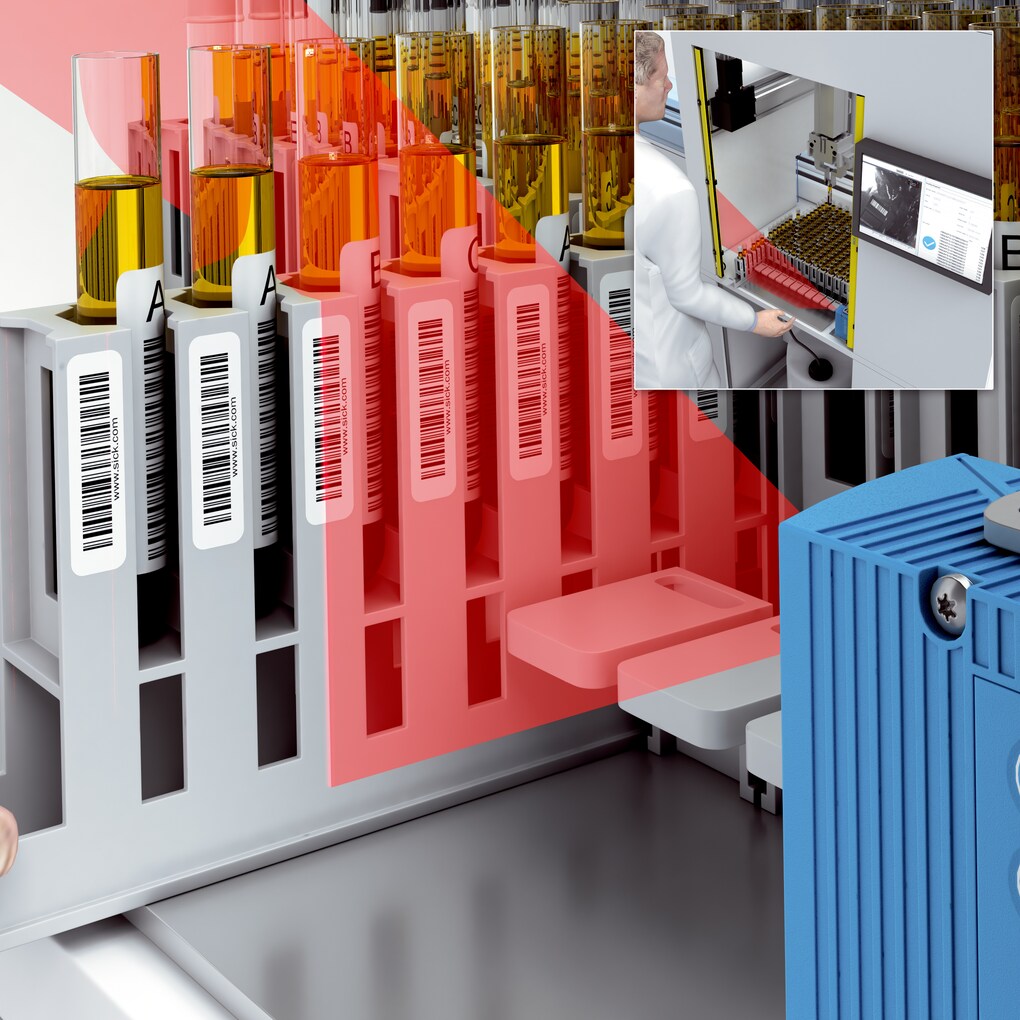 在多行道分析儀中識別測試試管和機(jī)架代碼-德國西克SICK傳感器