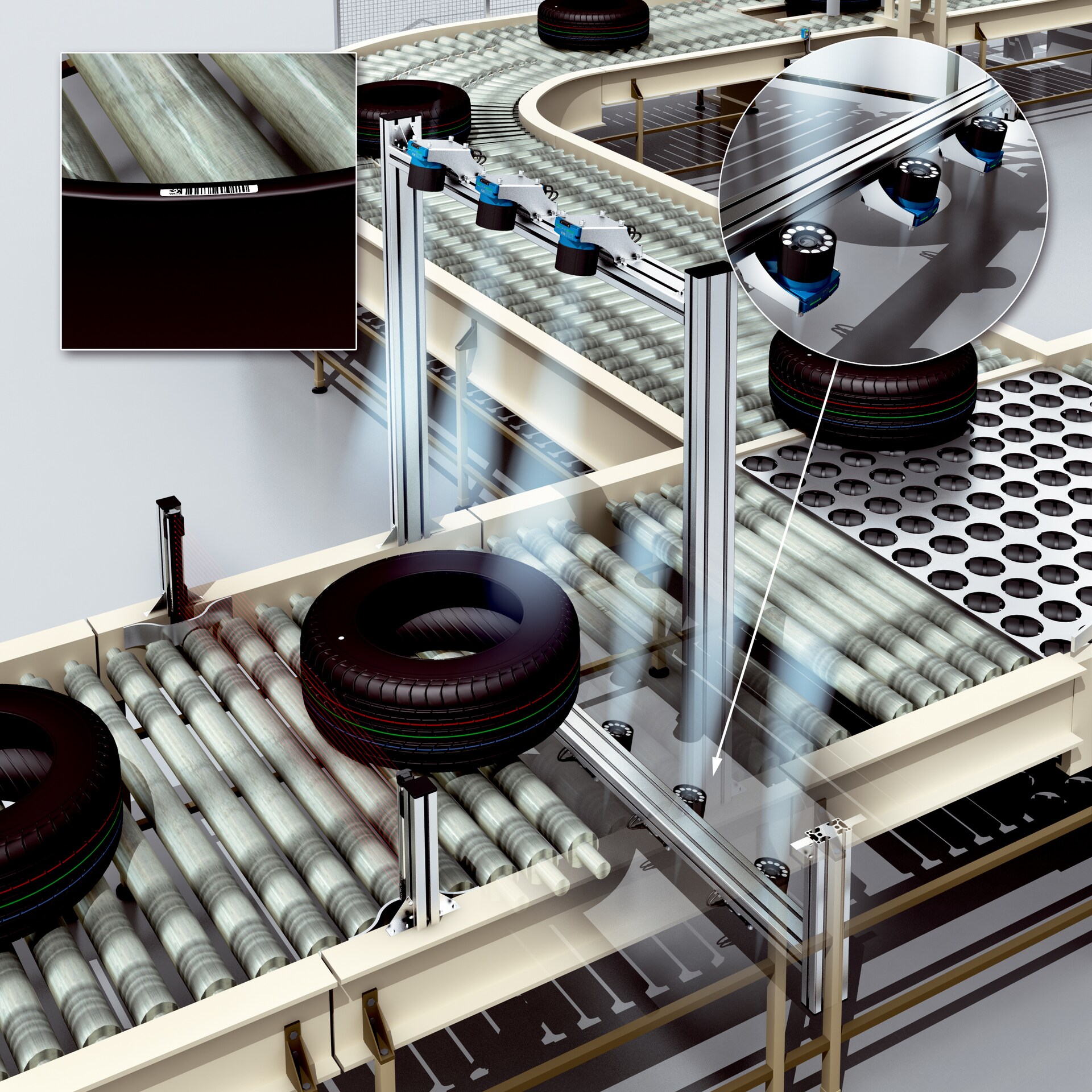為了能夠不受尺寸、位置、條形碼校準(zhǔn)狀態(tài)影響、并在不同的輸送裝置上可靠地識別生胎和成品輪胎,SICK 發(fā)明了輪胎編碼讀取系統(tǒng) Tire Lector Array。模塊化的系統(tǒng)由高分辨率的、基于圖像的讀碼器 Lector65x 組成。多個讀碼器一起組合成靈活的系統(tǒng),十分適合輸送裝置寬度。動態(tài)聚焦和動態(tài)亮度調(diào)整,用于在物體高度不同時(特別是在生產(chǎn)載重貨車輪胎時)獲取清晰而一致的圖像,盡量減少必需的攝像機(jī)數(shù)量。經(jīng)過深思熟慮的設(shè)計和個性化的預(yù)安裝使安裝和維護(hù)得以簡化。