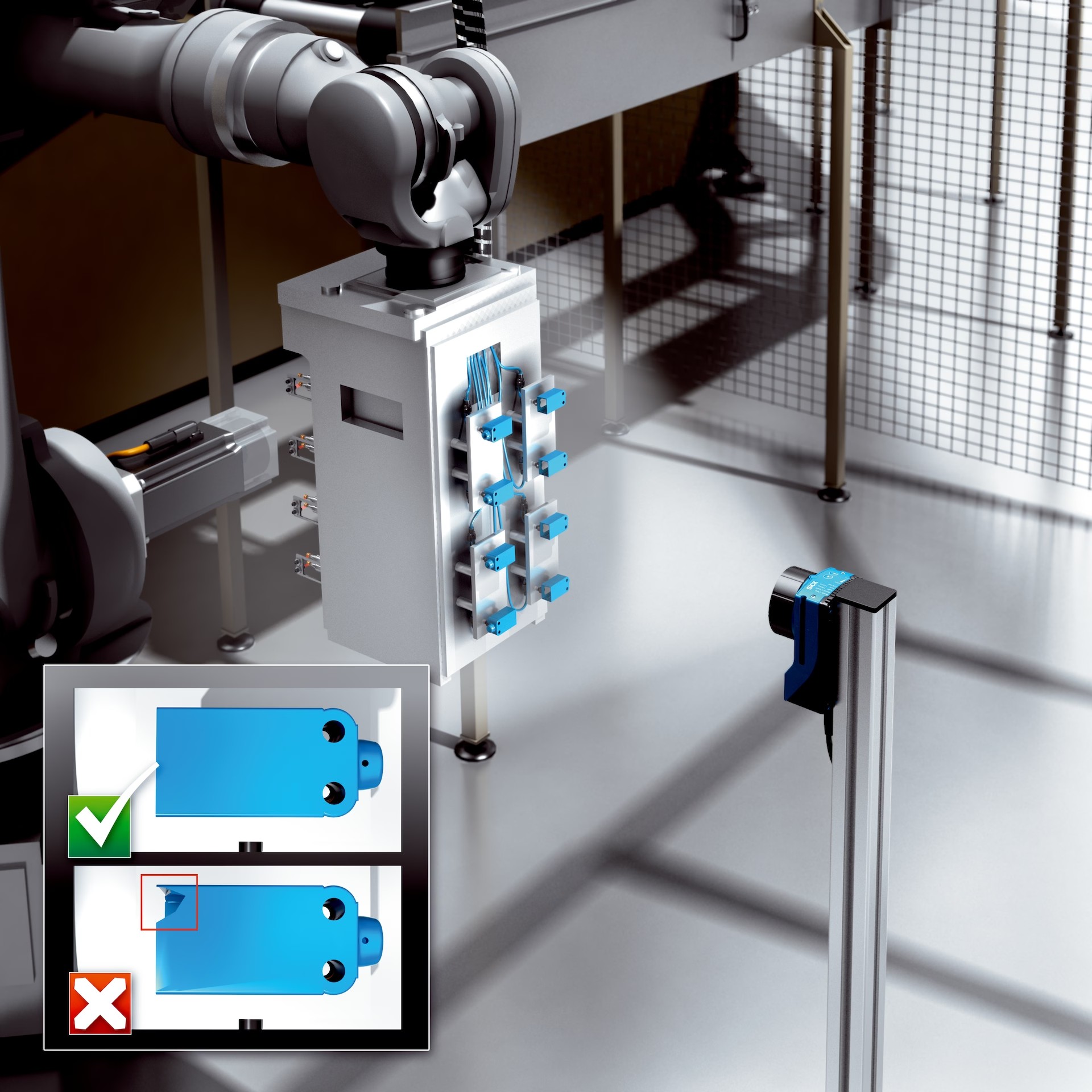 塑料注塑件的生產(chǎn)過程受許多因素影響,例如塑料原料顆粒中的溫度和質(zhì)量波動。2D 視覺傳感器 InspectorP6xx 檢測注射過量、注射不足或裂紋等缺陷。從而可將不合格的部件分揀出來并排除。