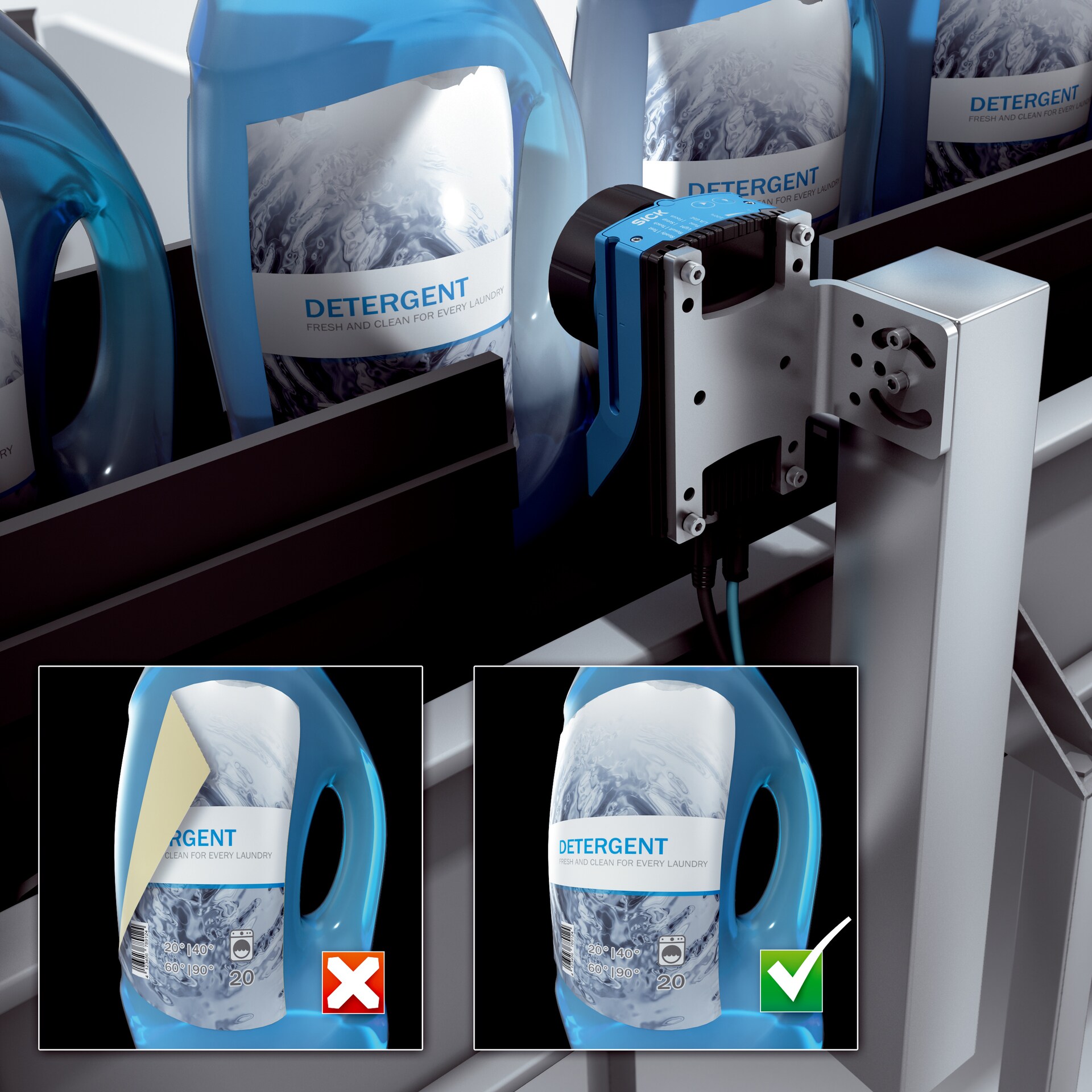 標簽不僅向客戶傳達產品的相關信息,同時也是廣告載體。因此,通過可編程 2D 視覺傳感器 InspectorP632 Flex 檢查存在性、位置和內容,如產品代碼與符號。集成式 web 服務器通過 Ethernet 提供功能與檢查結果的理想概覽。