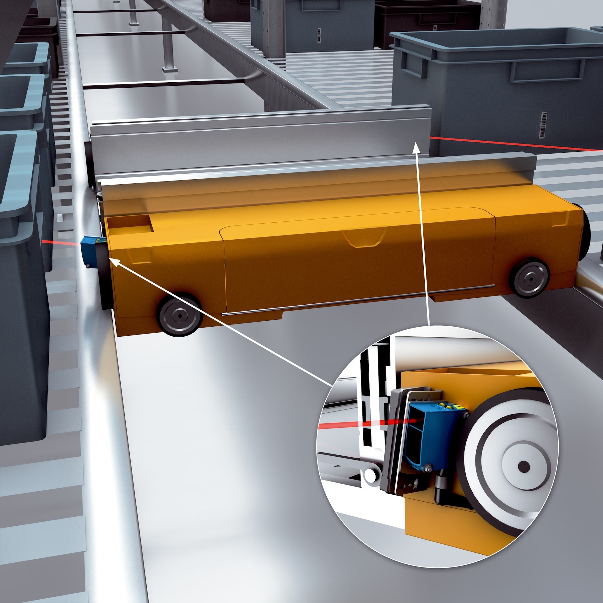 把載貨架存入貨格前,應(yīng)檢查指定存儲(chǔ)空間是否閑置。此時(shí),除檢測(cè)不同的物體顏色之外,還需要提供單層或雙層存放。距離傳感器和激光掃描儀是此類任務(wù)的可靠解決方案。