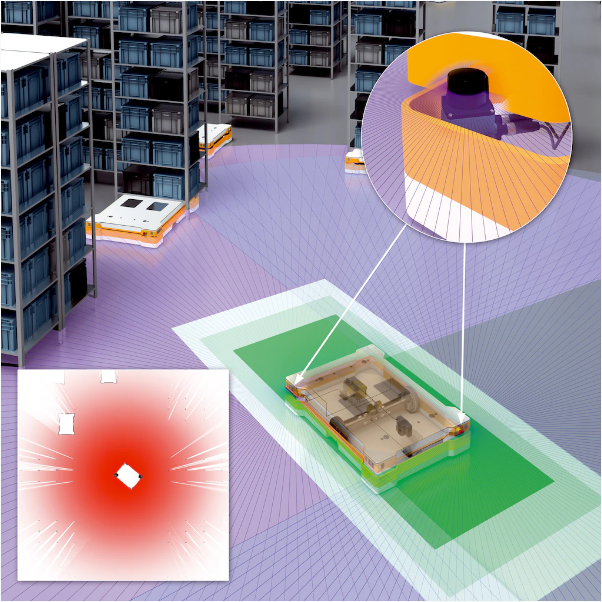 在生產(chǎn)和物流環(huán)境中,越來(lái)越多地使用自主式移動(dòng)機(jī)器人 (AMR) 自動(dòng)化實(shí)現(xiàn)貨架運(yùn)輸。為此,移動(dòng)機(jī)器人運(yùn)行到貨架下方并將其運(yùn)送到所需的目的地。2D LiDAR 激光掃描儀 picoScan150 特別適用于移動(dòng)機(jī)器人的自由導(dǎo)航。它檢測(cè)范圍大并且角度分辨率高,即使在很遠(yuǎn)的距離之外也能檢測(cè)到小型物體或精細(xì)結(jié)構(gòu),從而實(shí)現(xiàn)有效定位或可靠防撞。