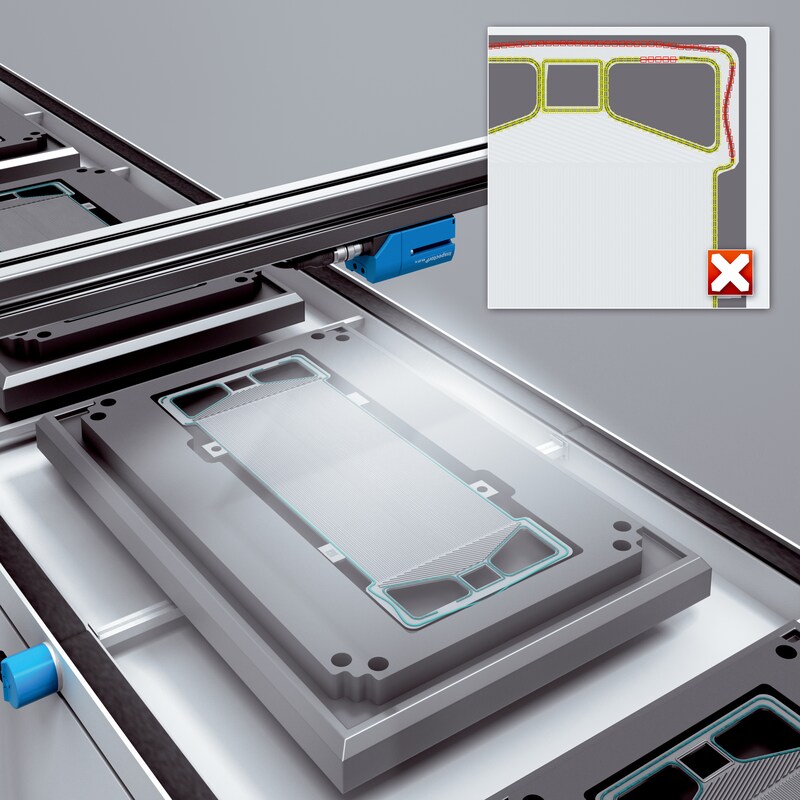 準確涂膠密封對于燃料電池的密封性非常重要。因此,InspectorP62x 2D 視覺傳感器檢查膠珠是否整體密封燃料電池。得益于其緊湊型結(jié)構(gòu),該傳感器也可以直接安裝在液體分注裝置上。集成的圖像處理工具使得InspectorP62x 的調(diào)試非常簡便。必要時可為這些工具擴展 SICK AppSpace。