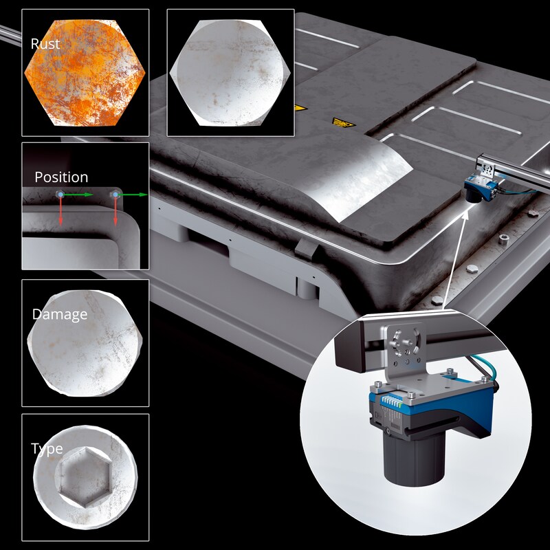 隨著電動(dòng)汽車和蓄能系統(tǒng)的普及,電池回收利用發(fā)揮著越來(lái)越重要的作用。電池在回收利用前必須先將電池組拆解。在這一流程步驟之前,Inspector83x 2D 視覺(jué)傳感器借助異常識(shí)別等 AI 功能對(duì)螺釘?shù)臓顩r、類型和位置進(jìn)行檢查和分級(jí)。在成功完成螺釘檢查后,拆卸機(jī)器人可以移除螺釘并打開(kāi)電池組的蓋板。