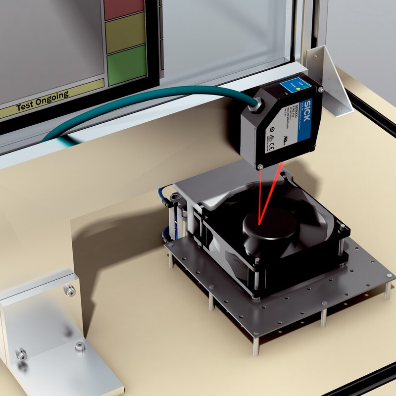 在測(cè)試臺(tái)上測(cè)量風(fēng)扇葉輪-德國(guó)西克SICK傳感器